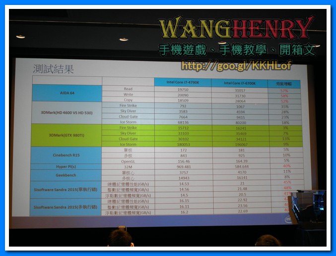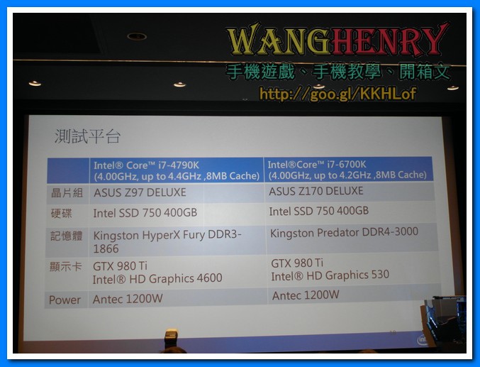 其他在現場也提到了新舊世代的CPU i7-4790K(舊)與i7-6700K(新)在差不多的硬體規格上的效能測試。