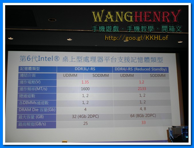 第六代的Intel Core CPU也完全支援了最新的記憶體DDR4(支援雙通道),而DDR4的記憶體(RAM)不但頻率再次提升至2133的外頻之外,省電的程度甚至比『低電壓的DDR3L』還來的省電喔!!