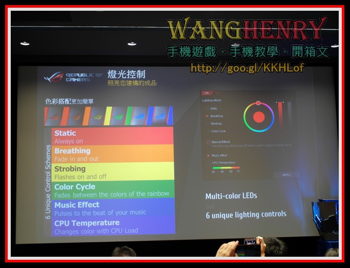 常看到一些玩家展示的電腦上都有閃亮亮的光線就覺得超炫的,華碩也將此空能加入的ROG系列的主機板,並用電腦軟體來設定主機板上LED燈泡的顏色。